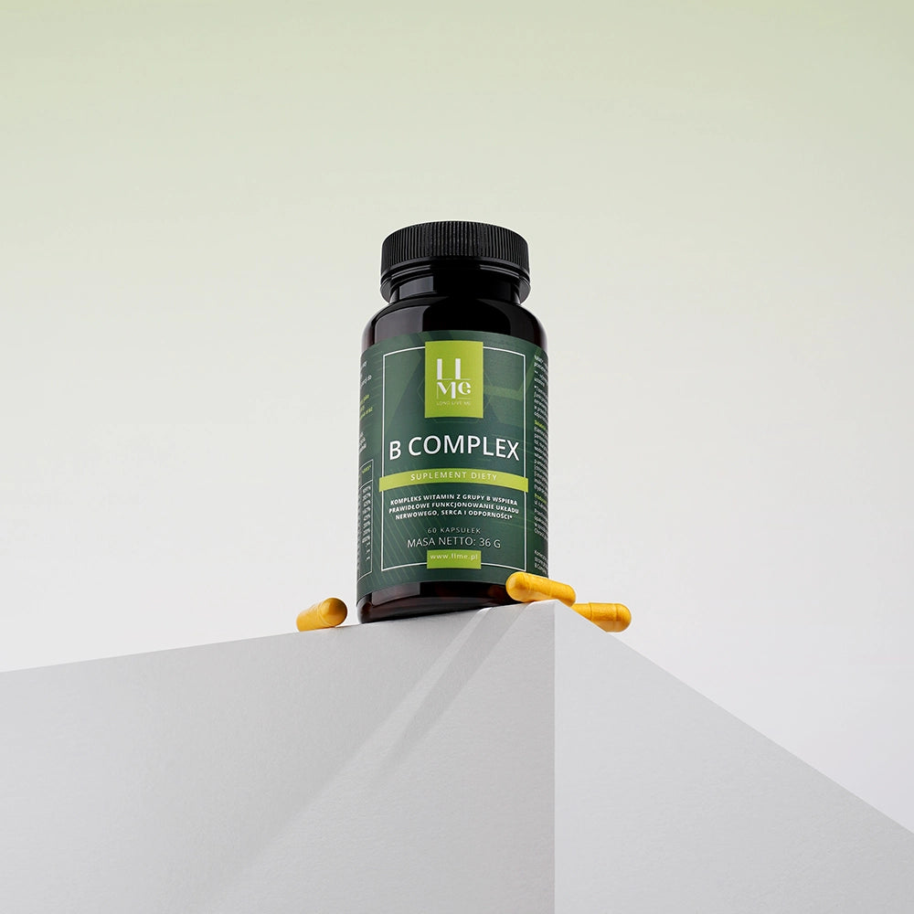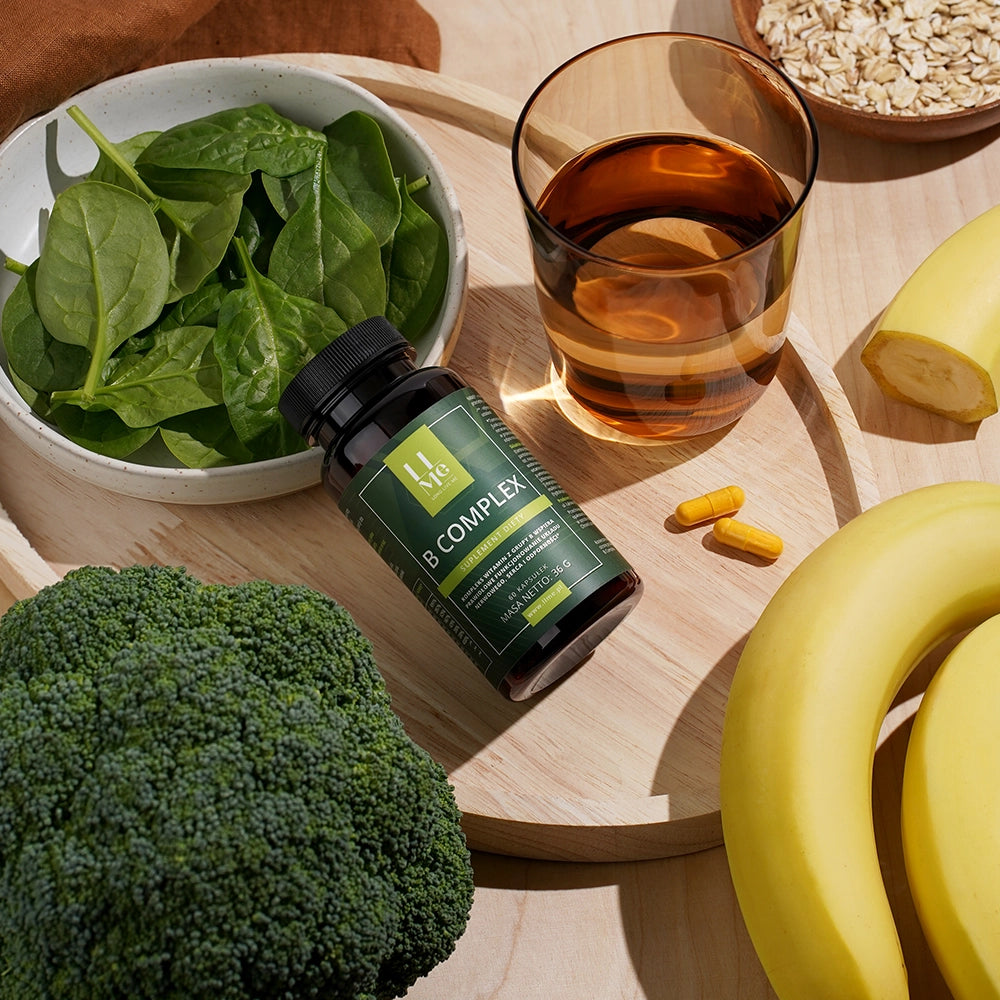 LLMe B Complex – kompleksowa formuła 11 witamin z grupy B w wygodnych kapsułkach roślinnych, wspierająca układ nerwowy, serce i odporność.